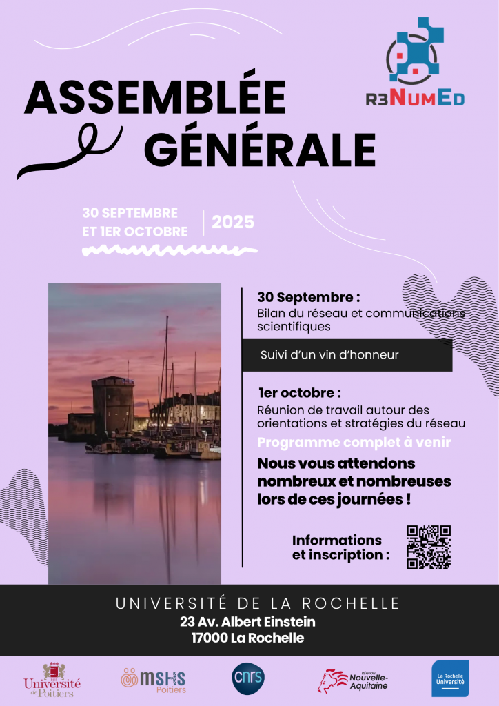 L’inscription et les repas sont gratuits pour l’ensemble des participants, mais afin de préparer au mieux votre venue nous avons besoin de quelques informations : https://evento.renater.fr/survey/questionnaire-ag-r3-numed-hbwofwl9