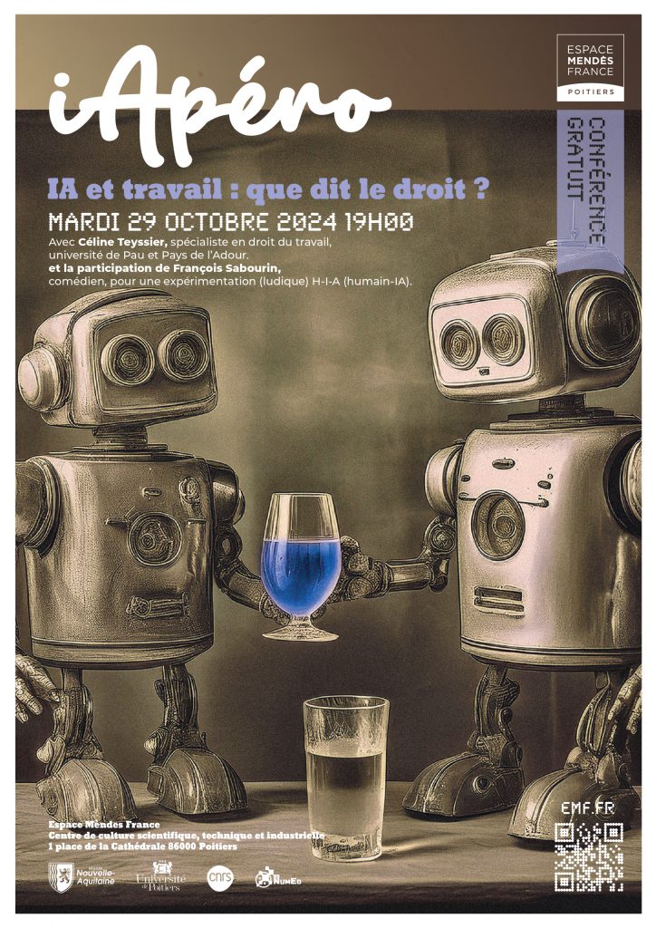 Les IApéros sont des moments d’échanges entre scientifiques et publics, organisés à l’Espace Mendes France de Poitiers. Les participants pourront se retrouver autour d’un verre et d’une planche apéritive, pour dialoguer sur des sujets d’actualité en lien avec l’IA dans un cadre convivial !